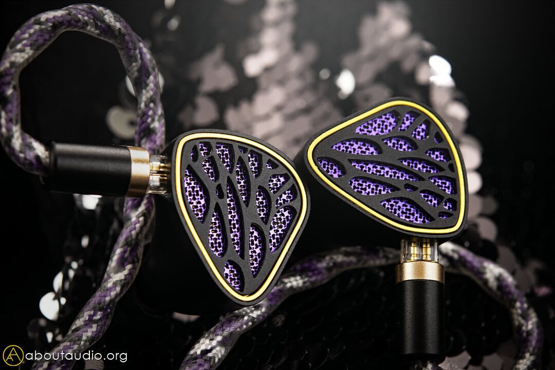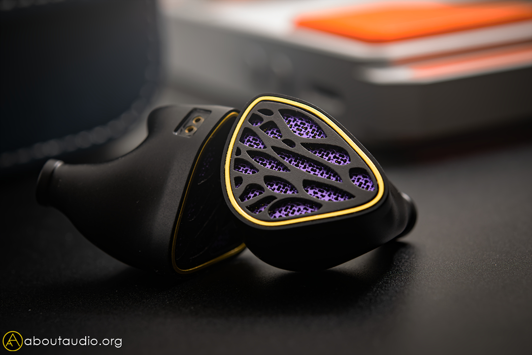 The iconic ‘spiderweb’ faceplates serve as Helmholtz acoustic structural covers, where multiple different material dampers are stacked to create a 3D-structured cavity. Kinera states that this particular Helmholz design improves the timbre and decreases treble distortion by eliminating unwanted sonic refractions and reflections. Above all, the air holes relieve the ear canal pressure and provide better bass and staging.