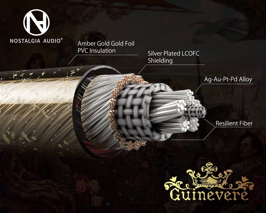 Internally, as hinted earlier, Guinevere is built around a quad‑alloy concept that Nostalgia calls a blend of gold, silver, platinum, and palladium—essentially an Ag-Au-Pt-Pd alloy. Nostalgia Audio highlights Guinevere as the world’s first quad-alloy cable, and while that may sound gimmicky, the actual performance was what convinced me.