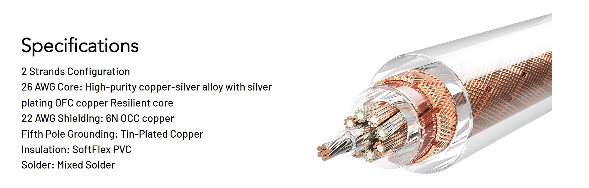 Unlike those typical alloy cables, Kratos involves multiple combinations of wires that differ in material and dimensions, which Nostalgia states to be a ton of work to perfect the tuning they’ve been looking for. Kratos is a 2-stranded pure copper cable comprised of a 26AWG silver copper core and a thick 22AWG shielding layer of 6N OCC copper wires.