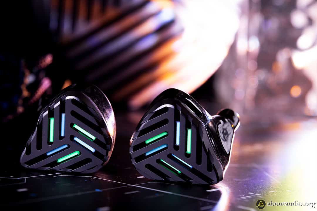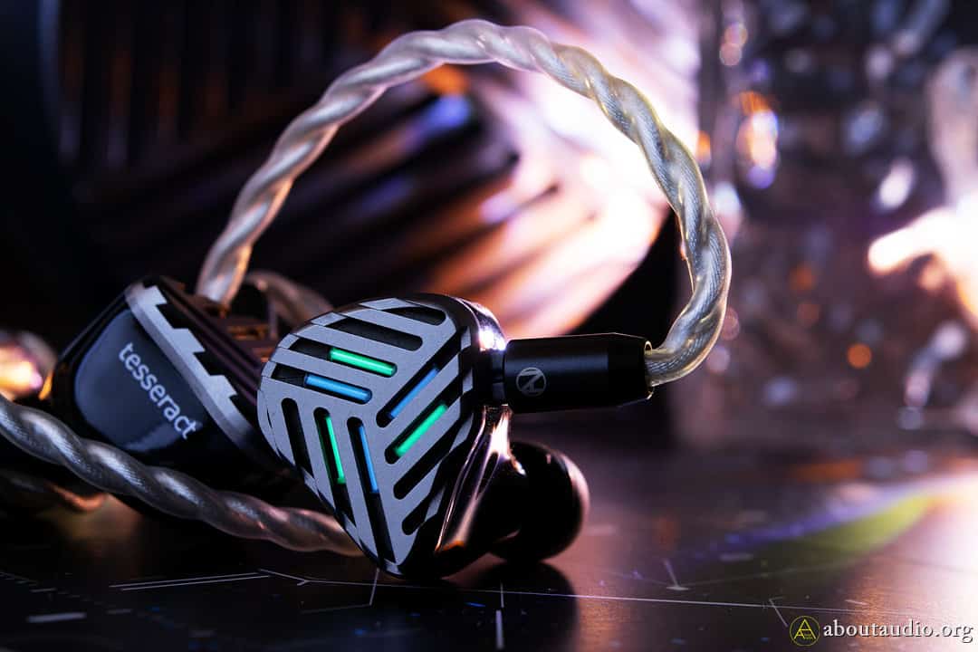 Tesseract is a 16-driver hybrid IEM that uses 32 drivers in total for the pair. Let’s talk about the specs a little later and first go through the rest. Tesseract has one of the most unique and interesting looks and features. The faceplate has the same diagonal grill structures as the aluminum case. Between these grills are installed with fluorescent sticks that glow when absorbing light.
