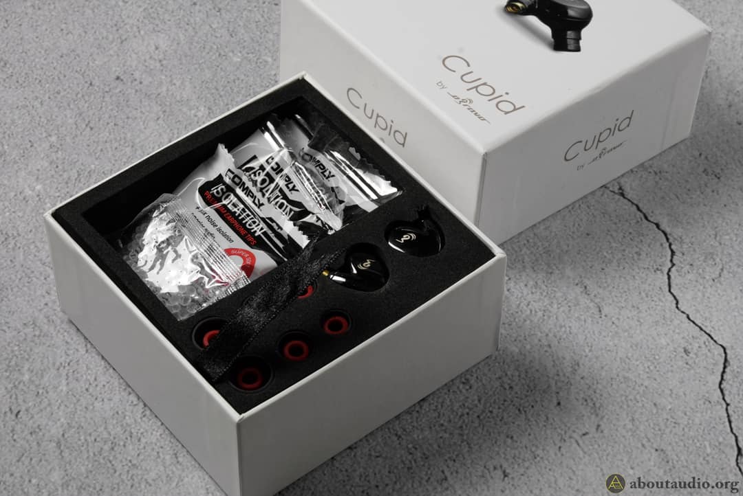 Cupid comes in with a clean, compact packaging. Other than the earpieces and some paperwork, the included accessories are 3 pairs of silicone tips, 3 pairs of Comply foam tips, a pair of soft earpiece sleeves, a 4 braid OCC Litz SPC cable with gold-plated brass 2.5mm jack, and additional adapters depending on the packaging deals.