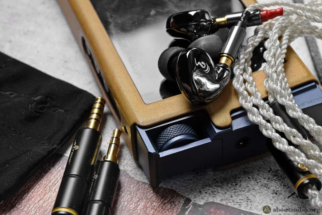 The Prime version is added with a Pentaconn 3.5mm adapter while the Ultimate version is added with both 3.5mm and 4.4mm adapters. This is quite a nice deal, especially the quality adapters and the earpiece sleeves. Though a real pity is that the packaging does not include any pouch or case to store the earphones. The earpiece sleeves would do a fair job protecting from scratches, but nothing other than that.