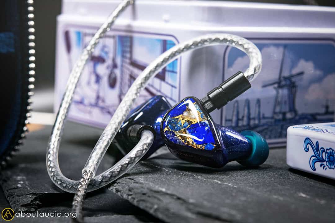 While most ultra-flagship IEMs (or any IEMs that use this many drivers, or multiple planar drivers) usually have massive earpieces, Apx SE is surprisingly small and compact. It’s also surprisingly light, making the usability and fitting experience just as easy and comfortable as a small budget earphone you would get anywhere. The earpieces are quite special as they’re made of Lapis Lazuli+Brass hybrid stone faceplate and hand-painted blue-gold resin housing.