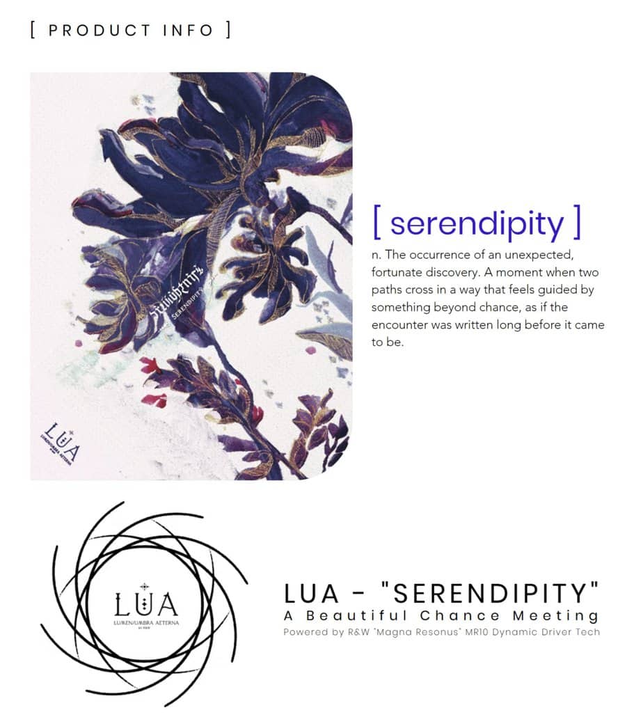 Rossi&Wing currently has three product lines, which are the Celestisium Series, Sanctorum Series, and LUA Series. The Celestisium Series is R&W’s most high-end in-ear product line-up, including First Light and Four Winds (TBD 2026). The Sanctorum Series is the premium cable lineup, and the LUA Series is a line of premium in-ear monitors that blend advanced driver engineering with artistic design. Positioned as a luxury collection, LUA IEMs emphasize three multisensory concepts, uniting sound, visual art, and fragrance. LUA Serendipity is available in two variants – the default and Monet Edition.